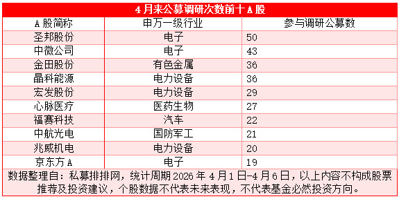 新华财经上海4月7日电(林郑宏)公募排排网数据显示,截至2026年4月6日,4月以来共有129家公募机构参与到A股调研活动中,覆盖到52家A股公司,合计调研次数达517次。